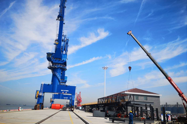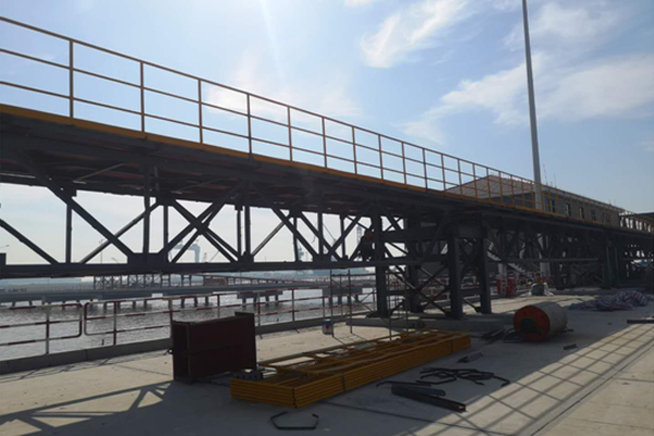我公司于2018年12月與南通通常港務(wù)有限公司簽訂港口散裝物料物流中轉(zhuǎn)項(xiàng)目設(shè)備一批,2019年3月15日我公司安裝人員已正式進(jìn)入現(xiàn)場進(jìn)行安裝,為保證業(yè)主單位的生產(chǎn)進(jìn)度及港口卸船機(jī)與帶式輸送機(jī)的協(xié)同生產(chǎn),我公司安裝人員在現(xiàn)場加班加點(diǎn),目前現(xiàn)場已初具規(guī)模。