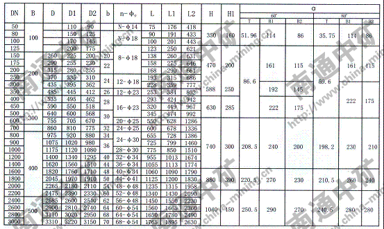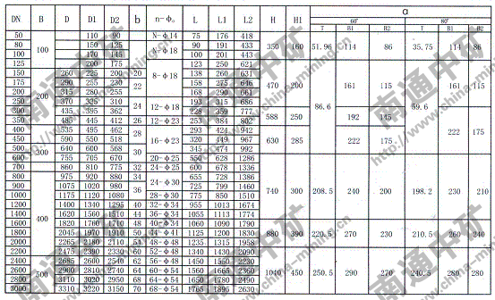 注:法蘭連接符合JB78-59《管路附件、法蘭連接尺寸》PNO.6Mpa規定,也可以按用戶要求采用其它標準。