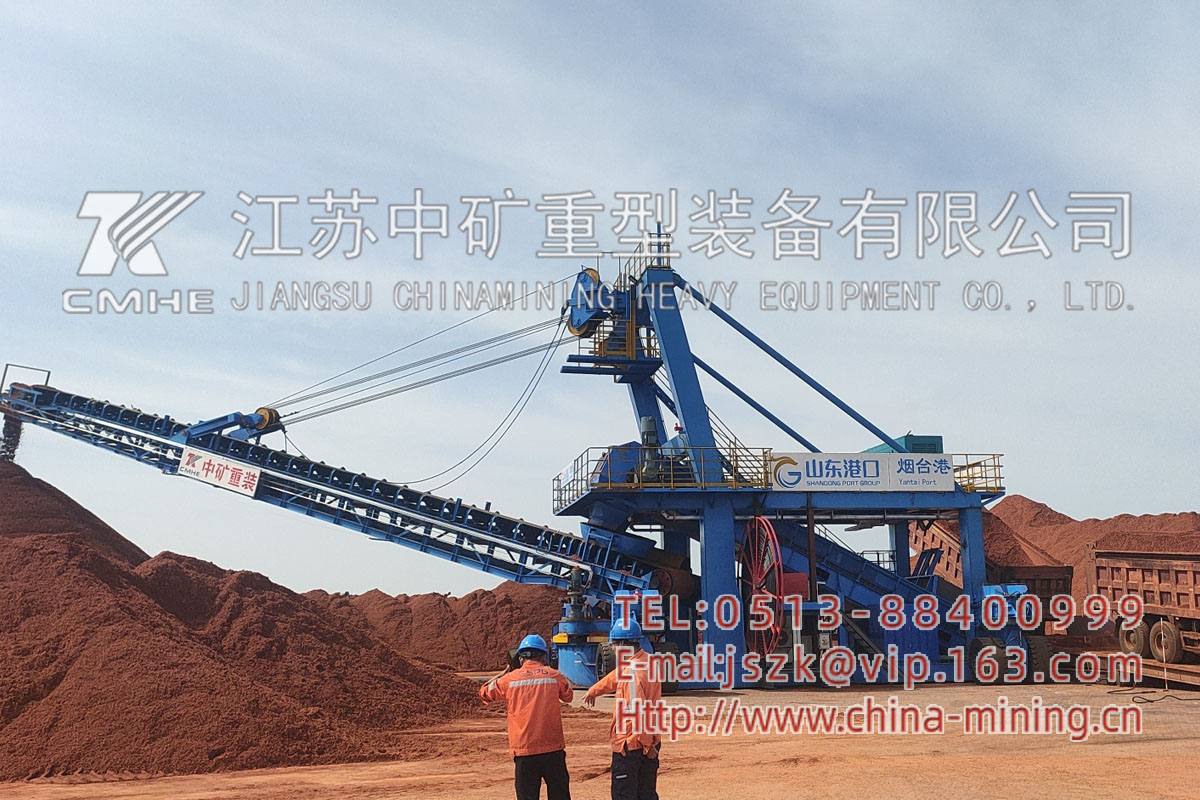 該堆高機最高可直接起高12米,設計流量1000噸/小時,左右回轉角度達±55°,由柴油發電機和市電雙電源驅動,可實現直行、橫移、斜行、原地轉向等方式行走,具備遙控系統、噴淋系統、除鐵系統等輔助系統。該堆高機的投產使用有效緩解蓬萊港公司碼頭前沿門機裝船能力不足和后場散貨起高的壓力,大幅壓降生產作業成本。