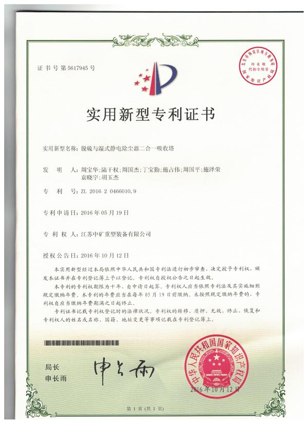 型式:脫硫、除霧塔上一體式,垂直煙氣流方向。