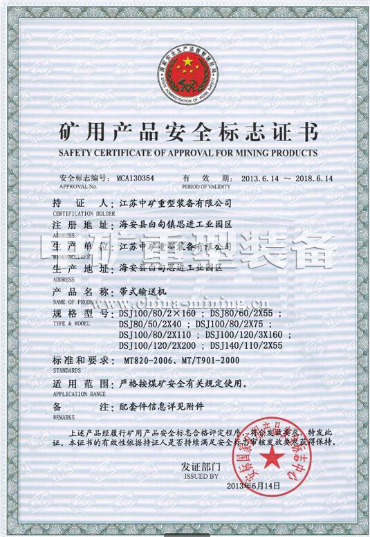 1.7.1 與輸送機配套的電動機、電控設備應符合GB3836.1-2000《爆炸性氣體環境用電氣設備 第1部分:通用要求》的規定,并具有安全標志準用證;