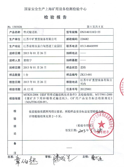 1.7.2 輸送機必須使用阻燃輸送帶,其安全性能應符合MT668-1997《煤礦用阻燃鋼絲繩芯輸送帶技術條件》的規定。非金屬材料的零件其安全性能應符合MT113-1995《煤礦井下用聚合物制品阻燃抗靜電性通用試驗方法和判定規則》的規定;