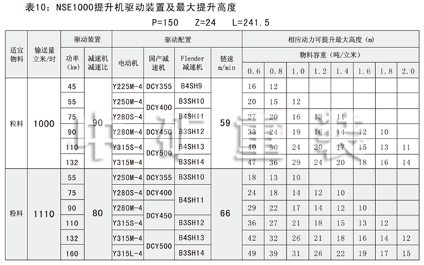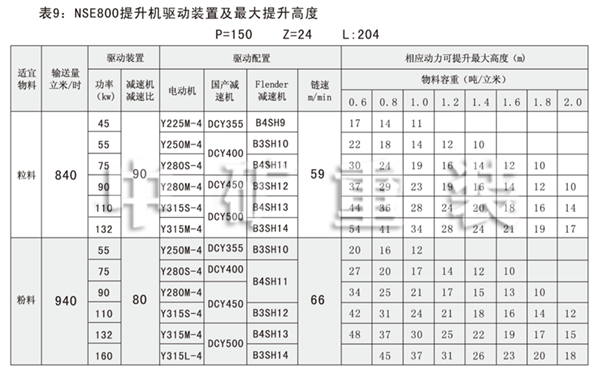 NSE系列高速板鏈斗式提升機(jī)共有九種基本型號(hào):NSE100、NSE200、NSE300、NSE400、NSE500、NSE600、NSE700、NSE800、NSE1000,每種型號(hào)根據(jù)輸送物料的不同,選擇不同的提升速度,提升速度≤70m/min,提升高度65m。另外,中礦公司還可根據(jù)用戶要求輸送量介于上述型號(hào)之間的擴(kuò)展型號(hào)。